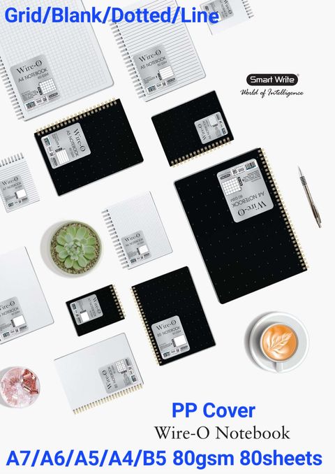 Smart Write Wire-O PP Cover Journal Note Book Grid Dotted Line Blank 80gsm 80sheets